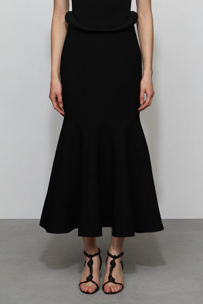 Compact knit skirt with a structured fit-to-flare shape that holds its form. Flattering, firm, and endlessly pairable—an essential base layer in any capsule lineup.