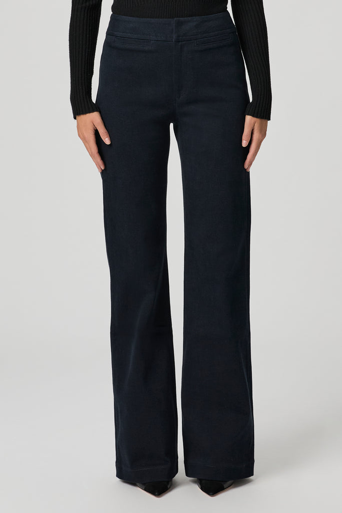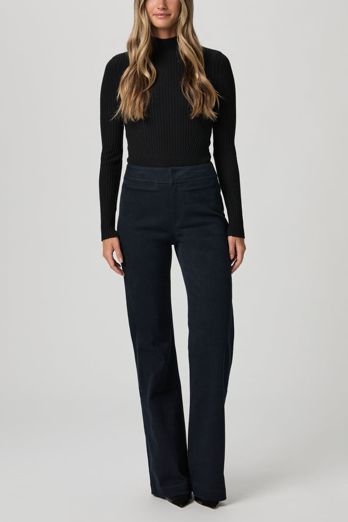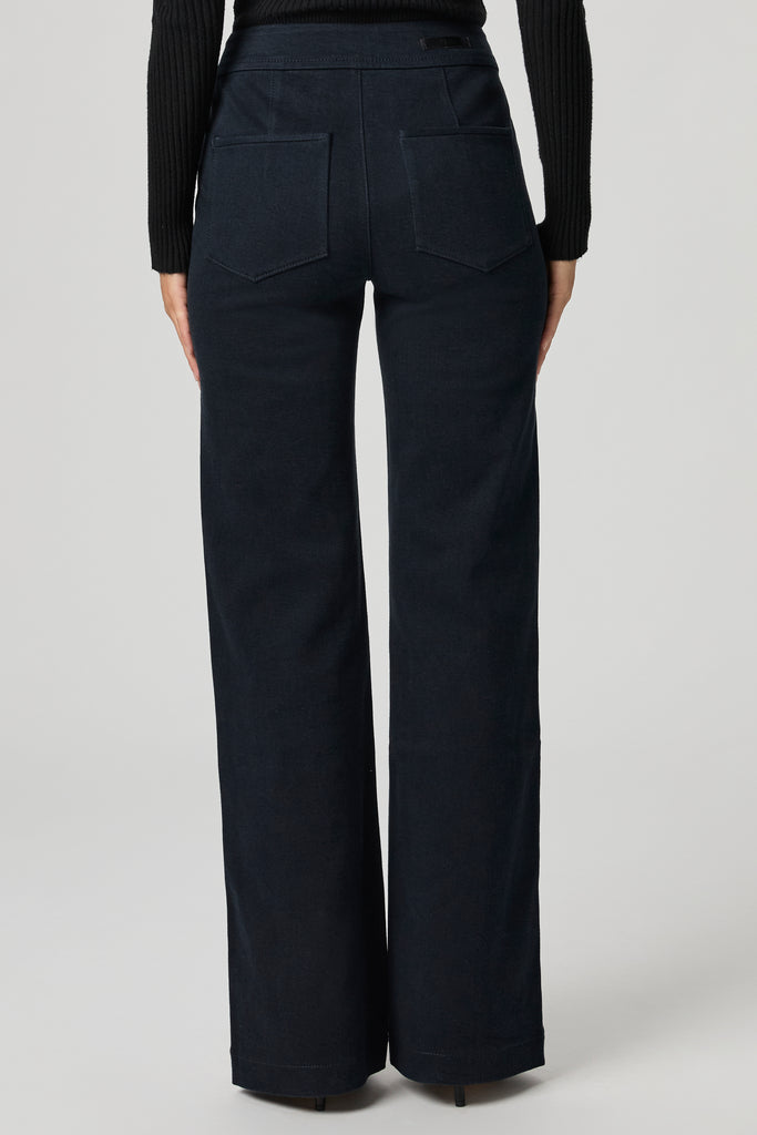 This 90s-inspired sleek wide leg is designed with a high-rise and a flattering bow leg silhouette. Cut from TRANSCEND VINTAGE denim in a rich navy blue wash with mini front welt pockets, this pair combines the signature comfort of Transcend with rich denim character for a lived-in look.