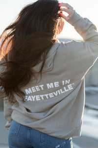 This is one of our latest additions to the "Meet Me In Fayetteville" line, our in-house line of apparel at By Request. This hoodie is selected for our clients because of its high quality, and unmatched comfort. Showcasing our trademark "Meet Me In Fayetteville" screen printed on the back. The placement of the phrase is strategic so the hood nor your hair will get in the way of this must-have hoodie from our boutique.