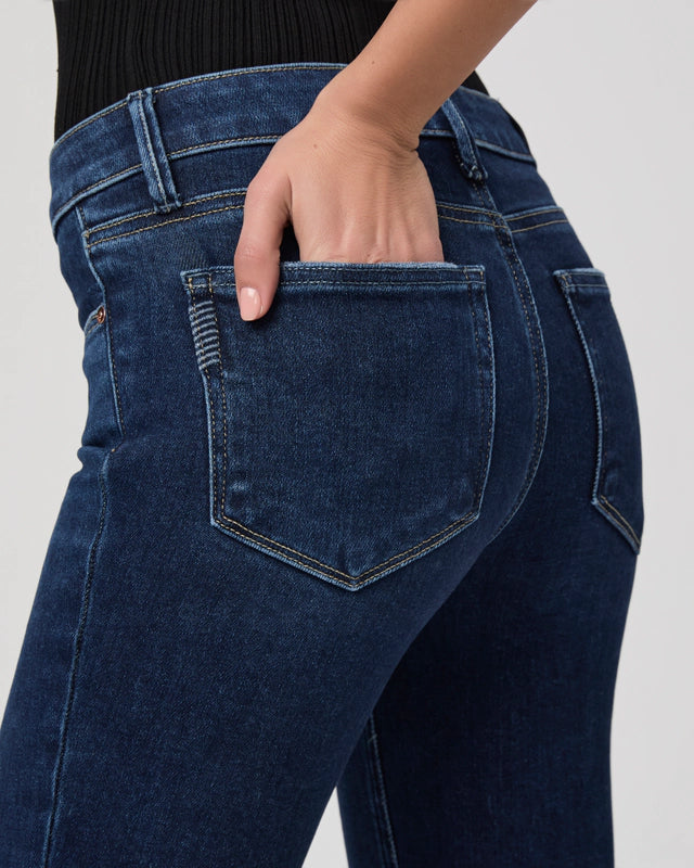 This classic bootcut creates a universally flattering silhouette that will never go out of style. This pair is cut from PAIGE VINTAGE denim in a versatile dark wash with seamed belt loops and a 32” inseam. PAIGE VINTAGE takes all of the work out of breaking in your favorite pair of vintage jeans.
