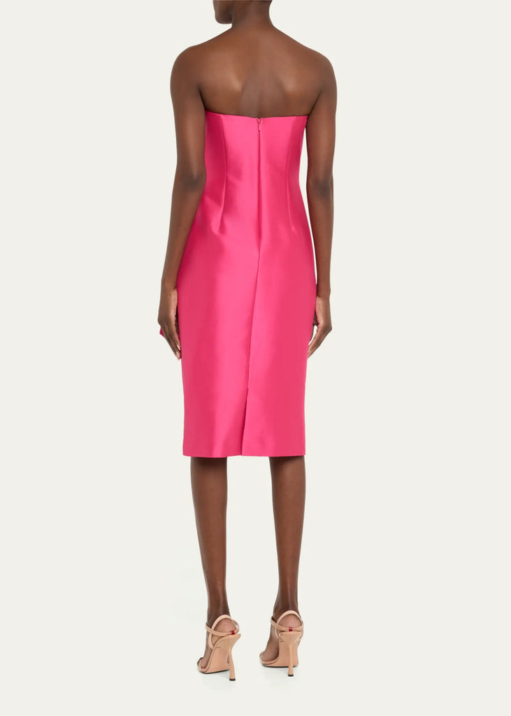Oh-so-femme and flattering, Badgley Mischka’s midi dress is the ultimate choice for a black-tie wedding or gala. The strapless silhouette has a dramatic bow draped across the front (we’re seeing a high-impact photo op). Keep accessories minimal and let the dress shine.