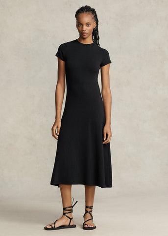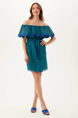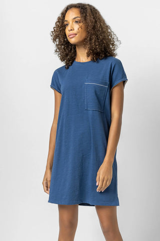 Bella Dahl Ruffle Midi Dress- Navy Leaves Print