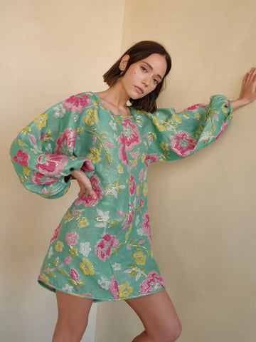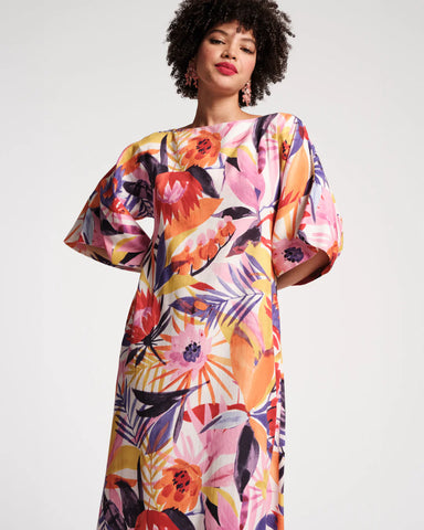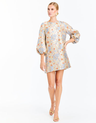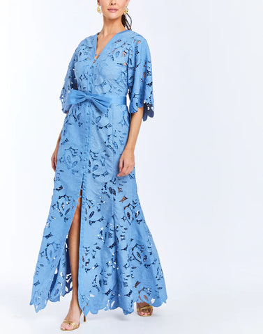 Milly Jasmine Blossom Pleated Maxi Dress- Blue Multi
