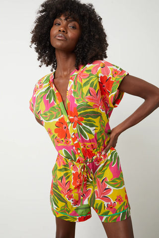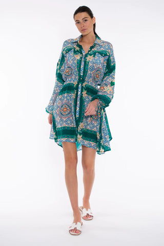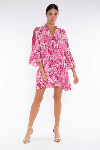 Milly Jules Sunset Tile Poplin Midi Dress- Pink Multi