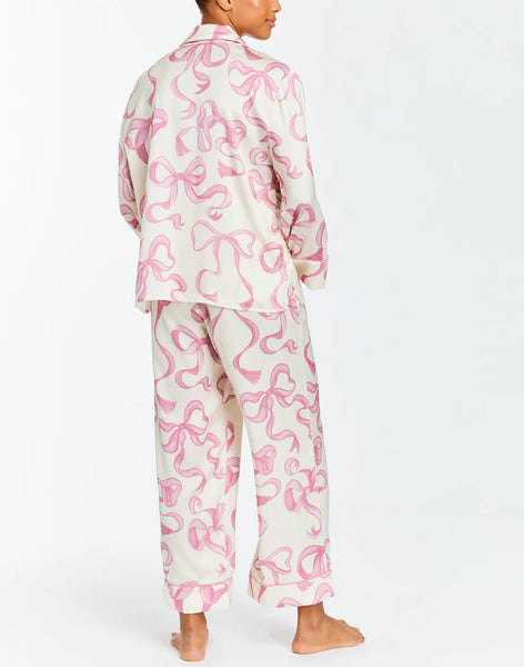 - Hand-painted bow print with coordinated piping details at lapels and cuffs