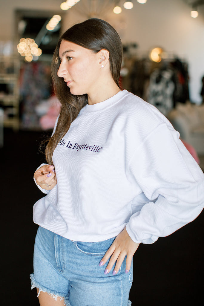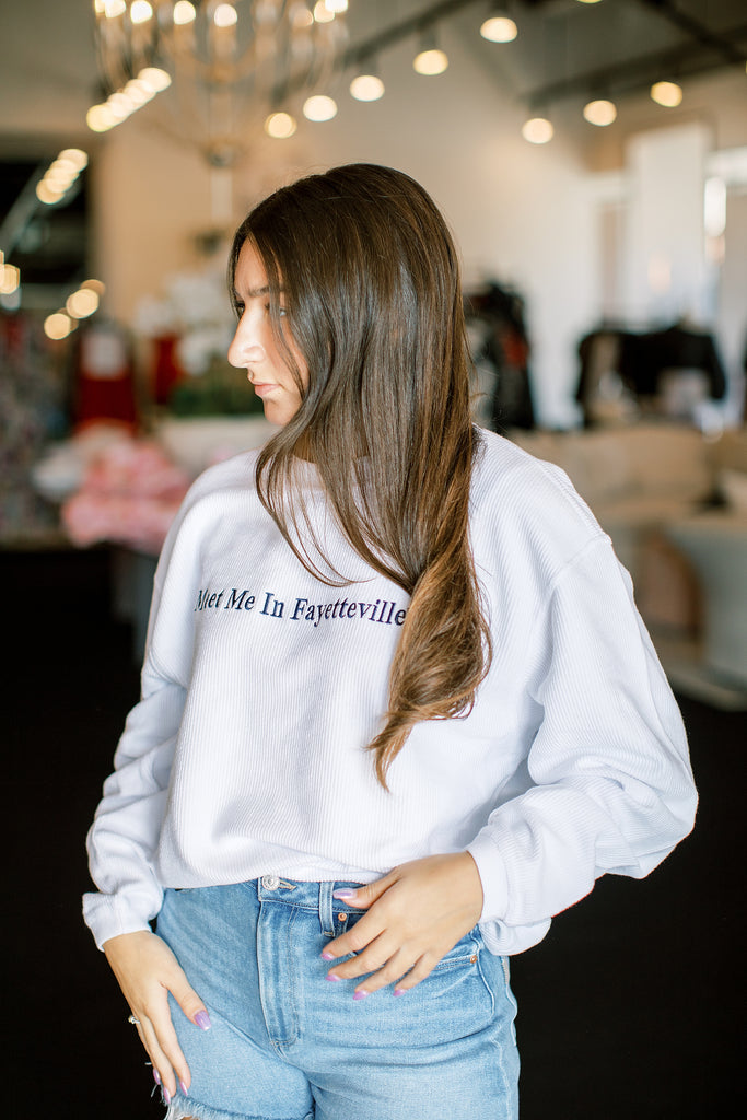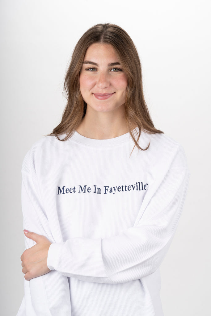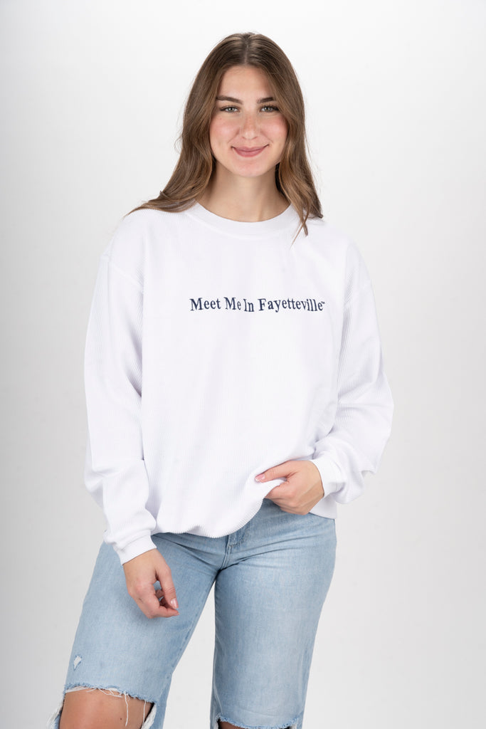 Meet Me In Fayetteville Corded Crew Sweatshirt- White