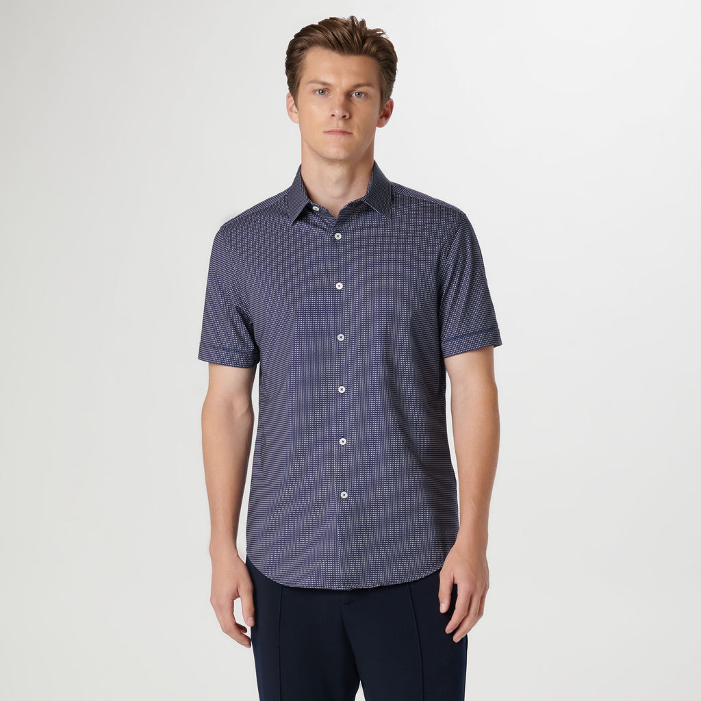 Bugatchi S/S Button Front Shirt- Navy W/White Dot