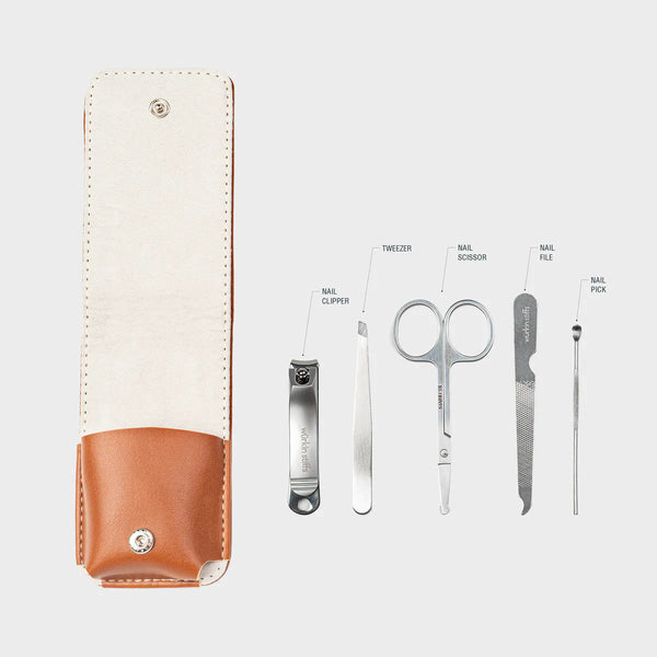 Keep yourself looking and feeling your best with Würkin Stiffs' Manicure Set. With everything you will ever need conveniently held in a vegan leather storage case, you will be the best groomed guy in the room.
