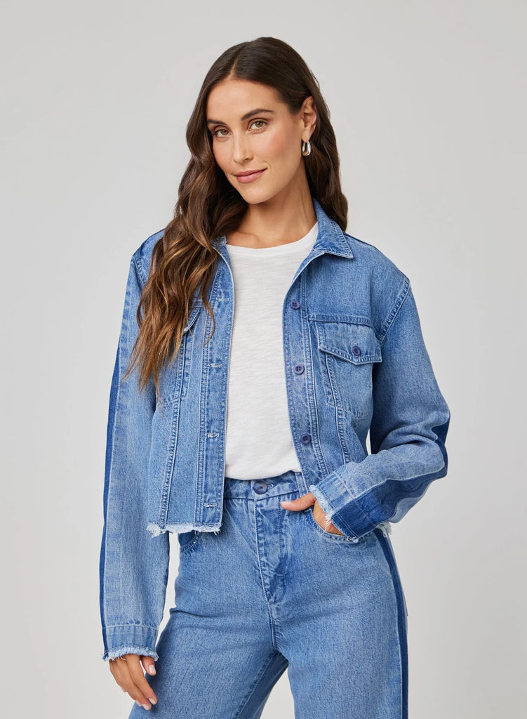 Introducing the Billie Tacked Sleeve Denim Jacket, in a vintage Laguna wash! Featuring a unique tacked sleeve design and a frayed hem, this denim wash jacket adds the perfect amount of edge to any outfit.
