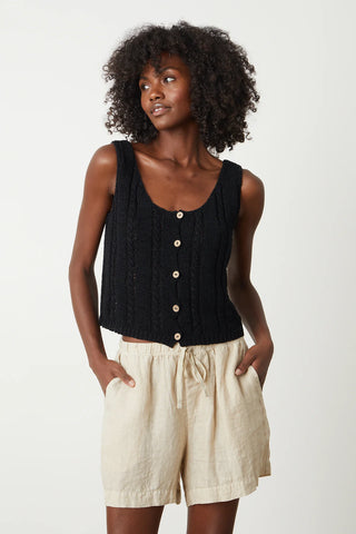 LoveShackFancy Elizabelle Knit Top- Smoke Grey