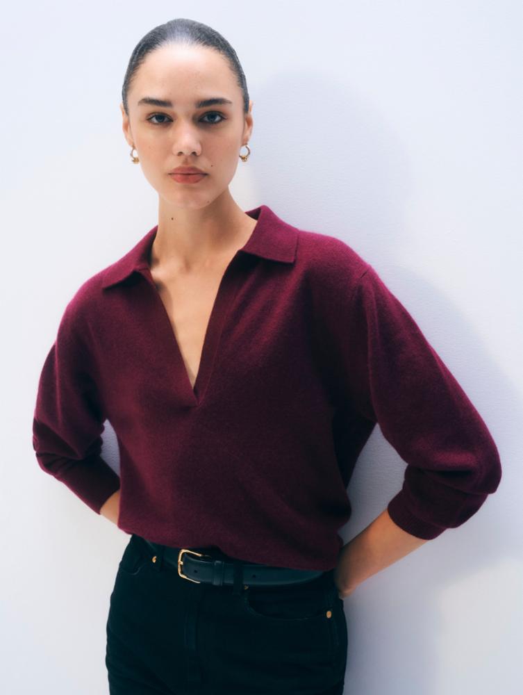A luxurious take on the classic polo. Knit from 100% Mongolian cashmere in a classic weight, it features an open collar and a straight fit that effortlessly flatters. Ribbed trims refine the look, making it a versatile piece for every occasion.