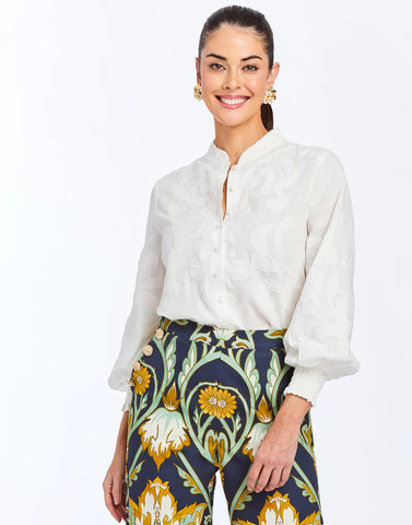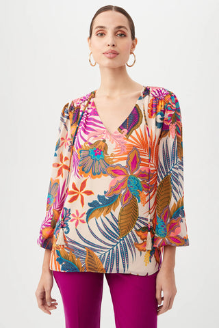 Bella Dahl Shirred Button Up- Berry Bloom Print