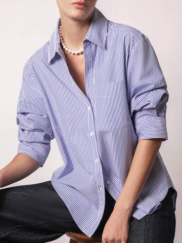 Bella Dahl High Low Hem Shirt- Indigo Stripe