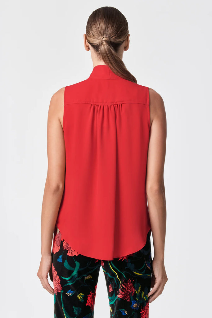 We love a little drama, especially when it comes to style. This red, sleeveless top features a V-neck with a tie for a playful vibe. Lightweight georgette elevates this top with an airy and luxe feel.