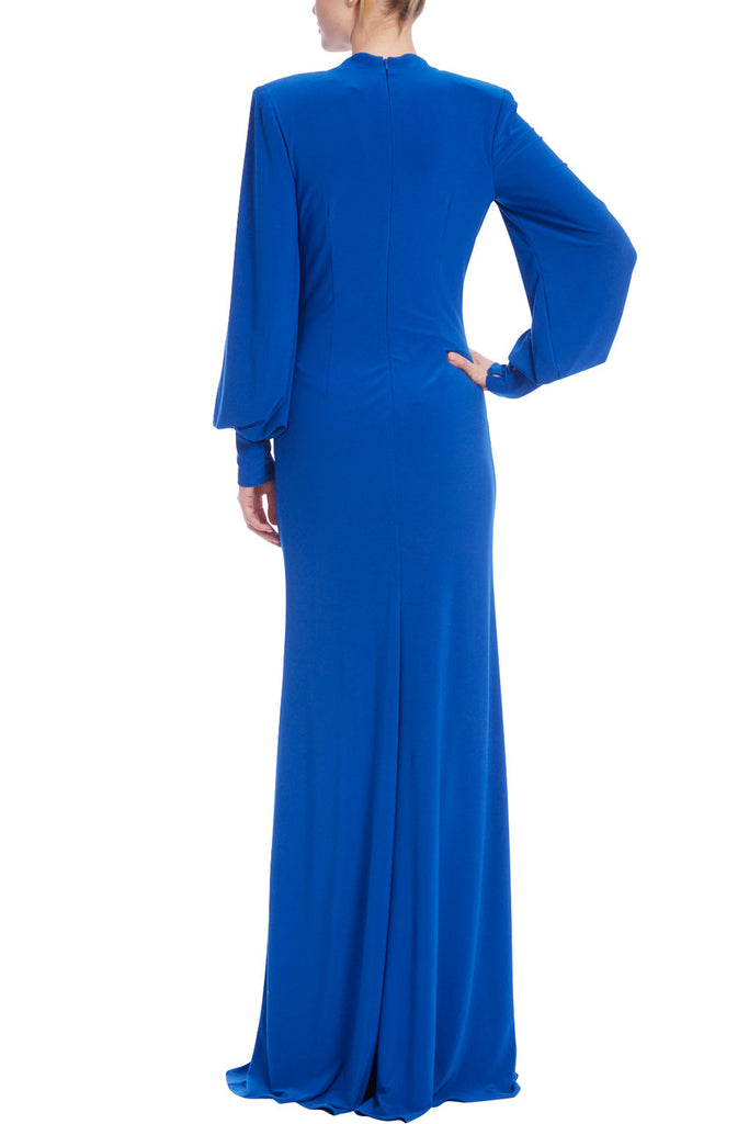 Badgley Mischka Balloon Slv V Neck Gown- Cobalt