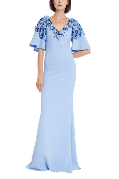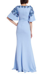 Badgley Mischka Beaded Flutter Slv Gown- Periwinkle