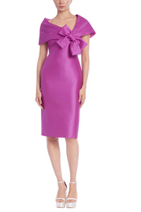 Badgley Mischka Bow Portrait Collar Sheath Dress- Orchid