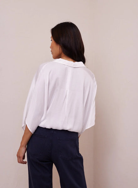 Bella Dahl Flowy Tie Waist Shirt- White