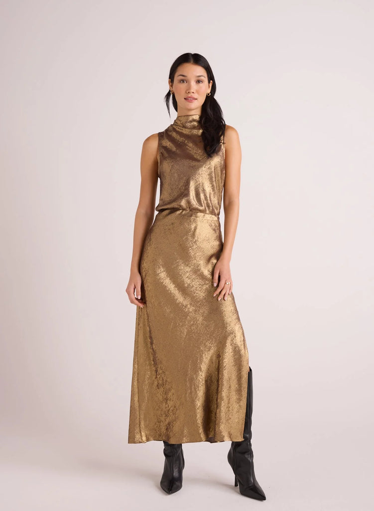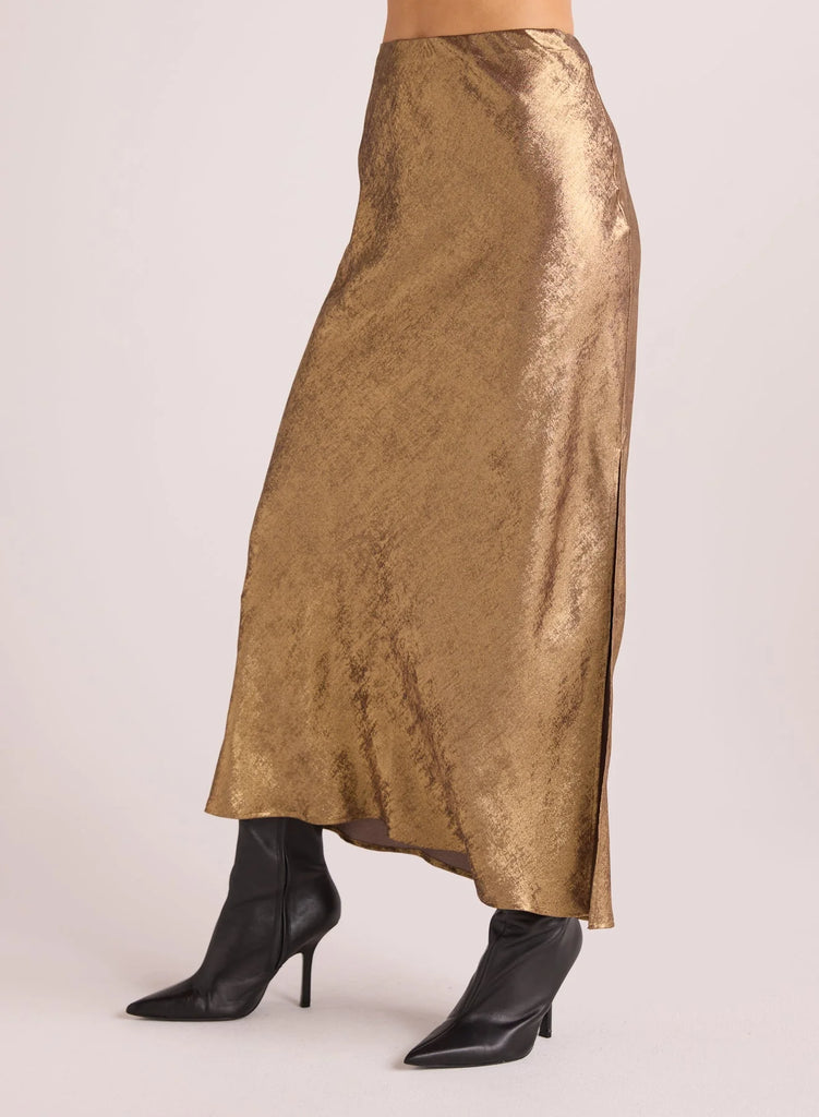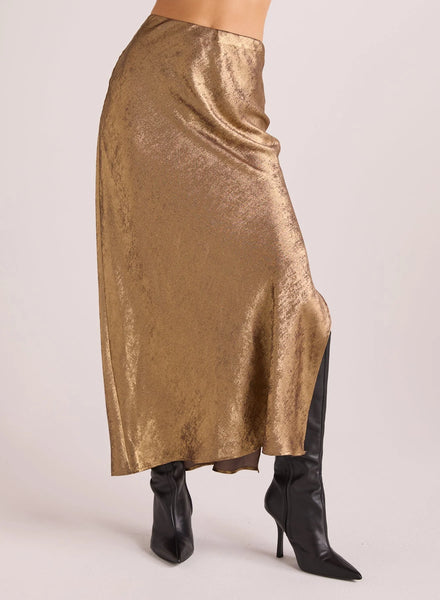 Bella Dal Side Slit Bias Maxi Skirt- Gold Metallic