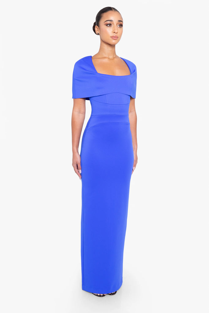 Whether you're attending a gala, a formal dinner, or a special event, the Bernice Gown. With Its mock cape style bodice and delightful detailing is sure to leave a lasting impression. Embrace your inner super model with a gown that embodies timeless beauty.