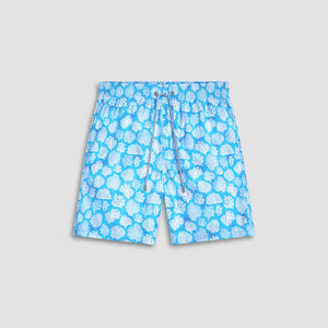 The Cosmo swim trunks are crafted from premium comfort stretch polyester in a coral print and feature an elastic waist with adjustable drawstring, a breathable stretch mesh lining, drainage grommets, side pockets, a rear patch flap pocket, UV protection and quick-dry technology. The sleek 17.5-inch out seam, offers the perfect balance between coverage and freedom of movement, making it an ideal choice for the beach or relaxing by the pool.