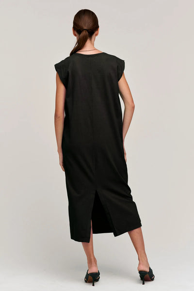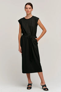 Crafted from a cotton knit with a little extra structure, gives this dress a streamlined look. Wear it unbelted for a modern and minimal vibe, or cinch with the tie belt for something more laid-back.