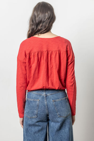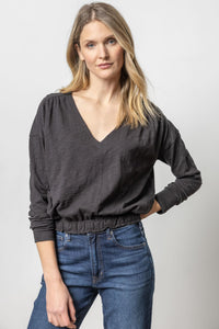Lilla P Elastic Hem Easy V Neck Tee