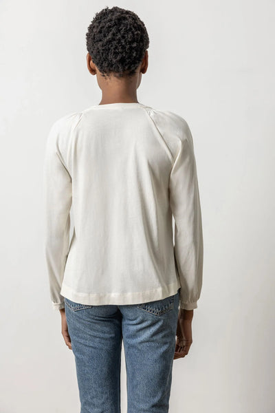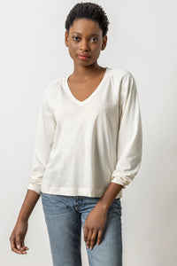 Lilla P Full Sleeve Smocked V-Neck- Ivory