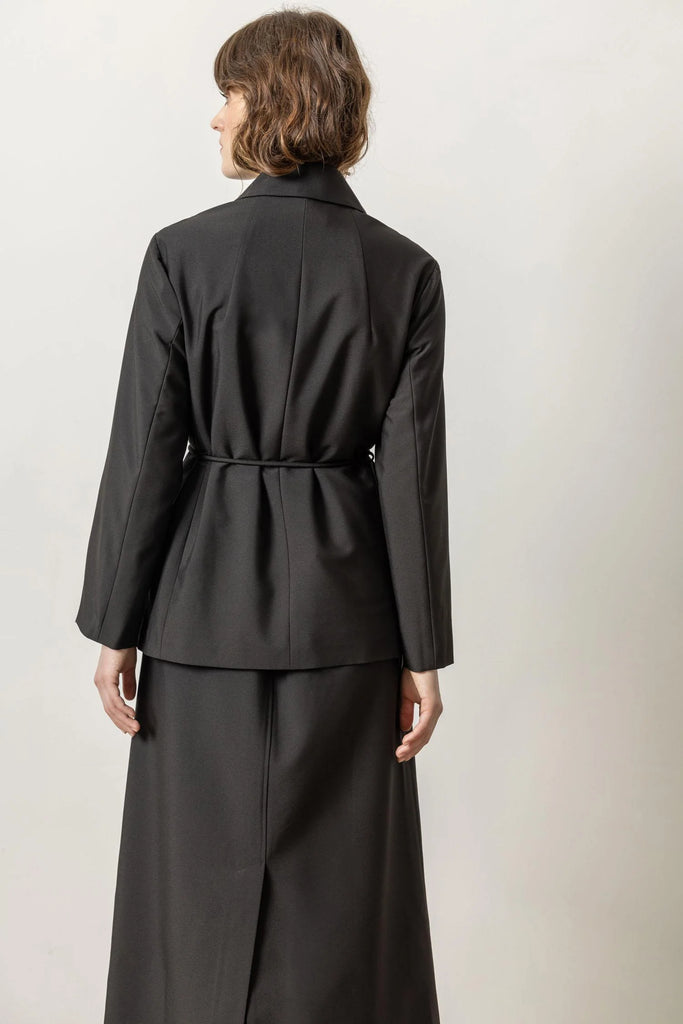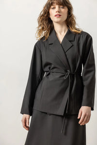Soft tailoring is popular this season, and Lilla P's blazer is a perfect example of tailored yet relaxed. With a notch collar, seaming detail, and an optional self tie belt closure, this blazer pairs beautifully with the coordinating crepe pants - but can also be worn with denim or just about anything else!