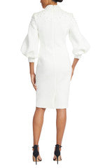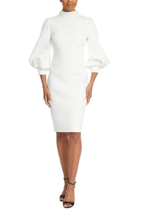 Balloon Sleeve Pearl Adorned Cocktail Dress A playful, on-trend piece in a classic hue. This youthful look is formal for professional events and creative for cocktail evenings.