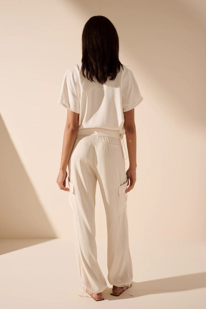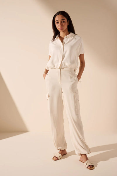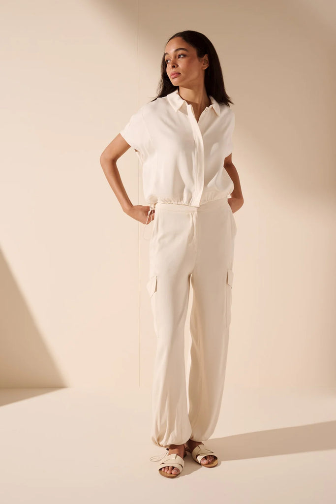 This blouse features pockets, hidden buttons, and drawstrings to sinch in just the right places.