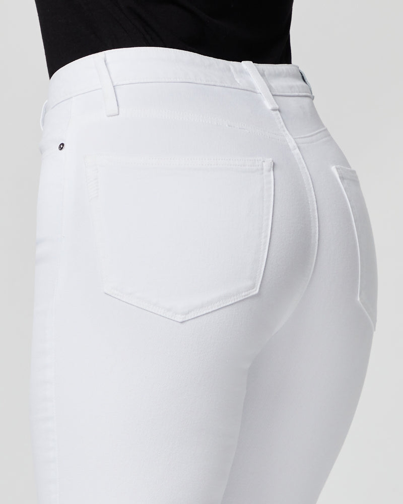 This super flattering pair is crafted in comfort stretch white denim with a destroyed hem and has plenty of coverage and the perfect amount of stretch.