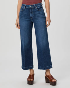 Anessa is a modern ultra high-waisted wide leg with a slightly relaxed fit and an ankle-length silhouette for an effortlessly chic look. Cut from PAIGE’S  TRANSCEND VINTAGE denim in a rich dark wash with natural fading, this pair has the look of authentic vintage denim but is incredibly comfortable with plenty of stretch and recovery.