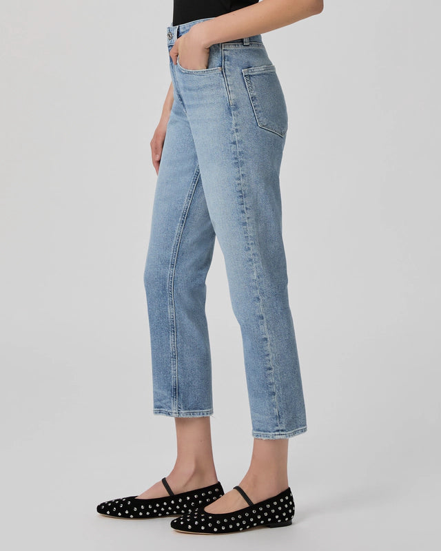 The Billy Crop is our high-rise slim straight leg with a cropped ankle length silhouette. This pair is crafted from PAIGE VINTAGE denim in a lived-in light blue wash with true vintage character. PAIGE VINTAGE takes all of the work out of breaking in your favorite pair of vintage denim jeans. Combining the comfort of stretch with everything we love about rigid vintage denim, PAIGE creates super soft jeans that feel perfectly lived-in from the very first wear.