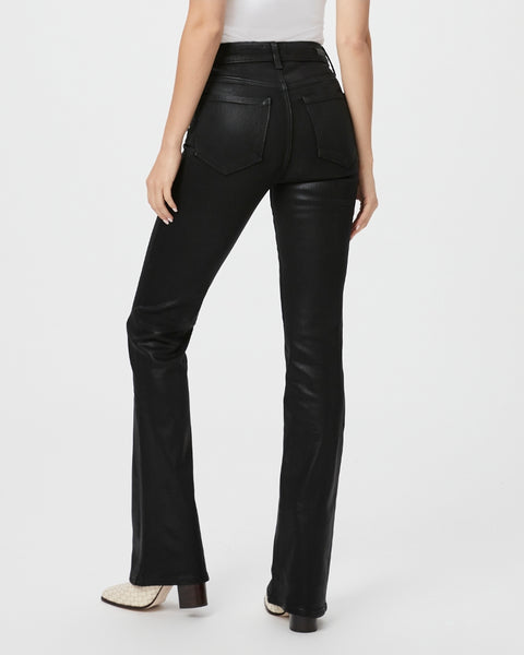 This high rise flare has a leather-like look, but doesn't sacrifice comfort. Cut from coated TRANSCEND denim in classic black with seamed pockets, this style is luxuriously soft with plenty of stretch and recovery to give it a flawless fit from morning to moonlight.