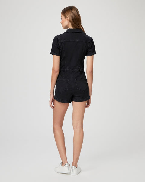 We all love an easy one-and-done outfit and the Meg Romper is our latest must-have. This short sleeve romper is thoughtfully designed with a puff shoulder, a waist tie, a notch collar, a hidden button placket, back welt pockets, double belt loops and a double button closure. Made from super soft denim with stretch in a vintage black wash, this casual one piece can be styled with anything from sandals to sneakers to mules.
