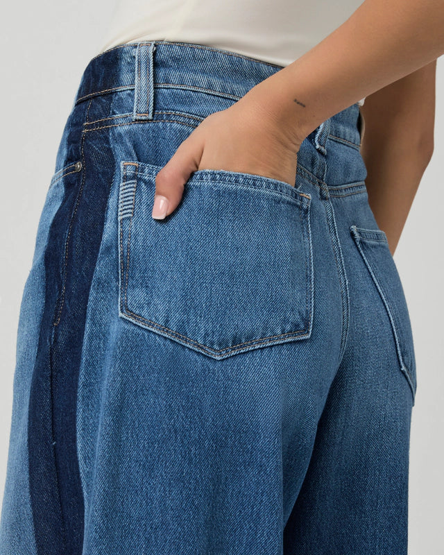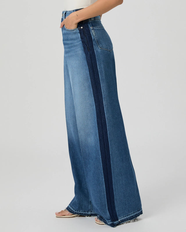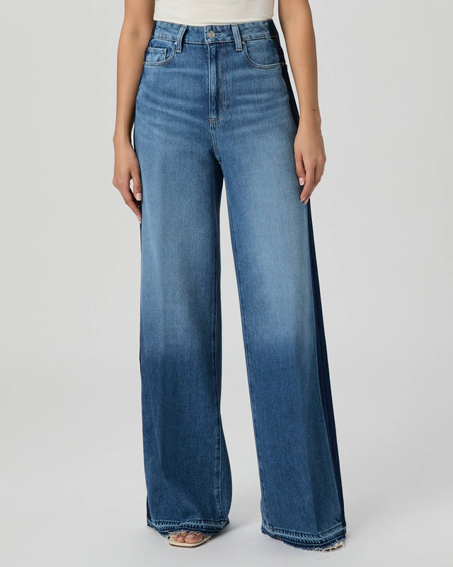 With the highest rise and widest leg in the PAIGE collection, Portia is a show-stopping fit. This ultra-wide leg silhouette is crafted from customer-favorite PAIGE VINTAGE denim in a medium wash with natural fading, lived-in details, an undone hem, and a released side seam stripe. PAIGE VINTAGE takes all of the work out of breaking in your favorite pair of vintage jeans. Combining the comfort of stretch with authentic vintage denim, PAIGE creates a super soft jeans that feels perfectly lived-in from the very first wear.