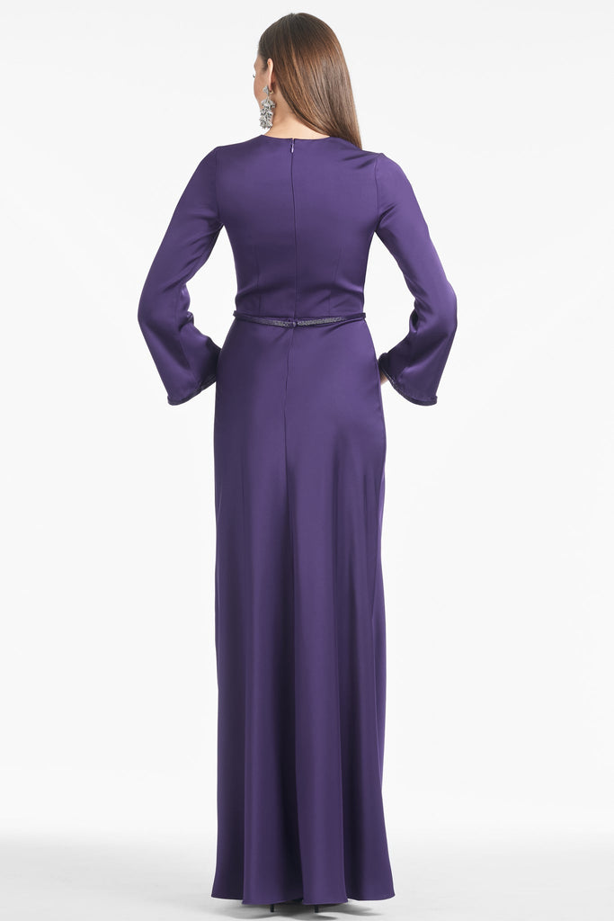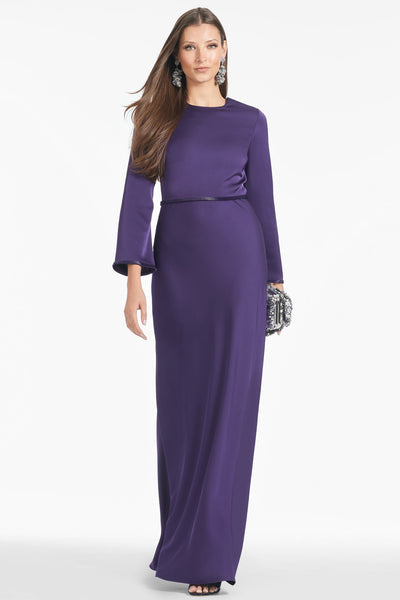 Alex is a gown who knows who she is: classy, chic, but certainly not lacking any style. This long-sleeve, satin crepe dress is in a rich Amethyst hue with subtle bell sleeves for ultimate flatter.