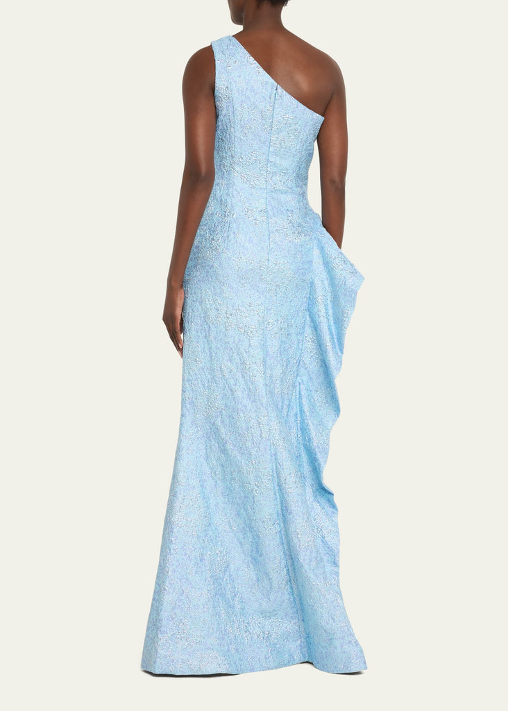 Teri Jon Metallic Jacquard One Shoulder- Powder Blue