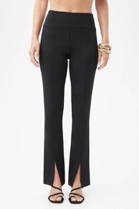 Flattering and stretchy Power Ponte gives this streamlined pant a comfortable fit that holds you in all-day long. Front slits at the hem add the finishing touches to this essential black pant, with an ankle-length hem and slight kick flare - the perfect choice for your year-round wardrobe.