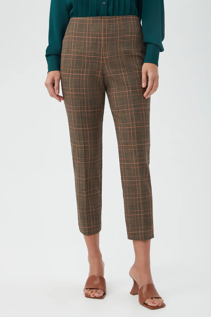 Create a chic look with these cropped, slim-fit pants featuring a flat front, side zipper, and classic plaid fabrication. Pair these slim, cropped plaid pants with our matching blazer for a complete look.