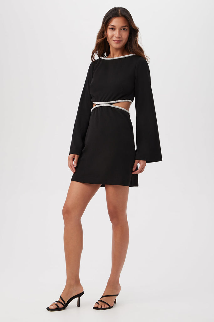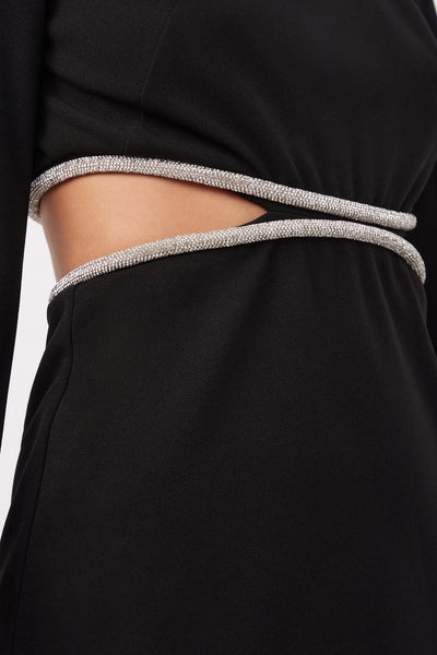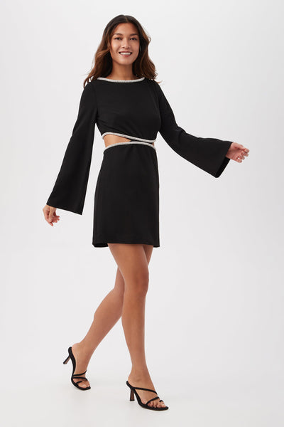 Trina Turk Sabia Boatneck Rhinestone Dress- Black